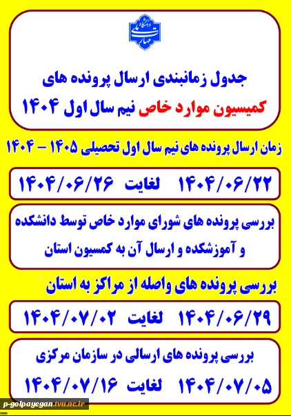 اطلاعیه کمیسیون موارد خاص سنوات ترم 6 2