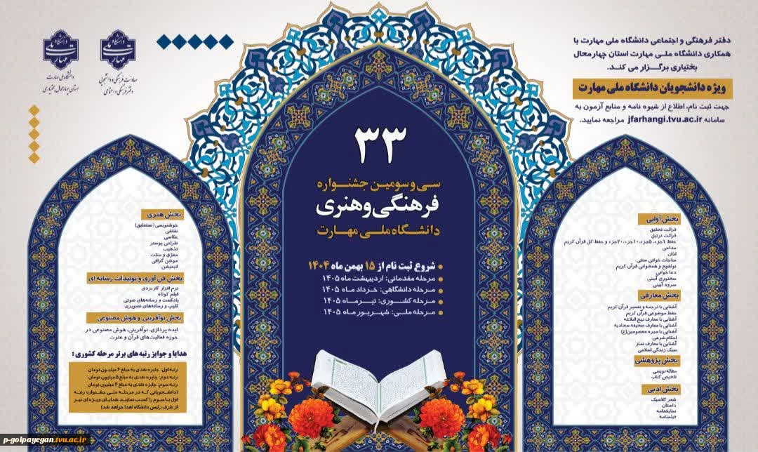 امتیاز دهید : آغاز ثبت نام سی و سومین جشنواره فرهنگی و هنری دانشگاه ملی مهارت 2 دوشنبه 20 بهمن 1404 ساعت 12:08